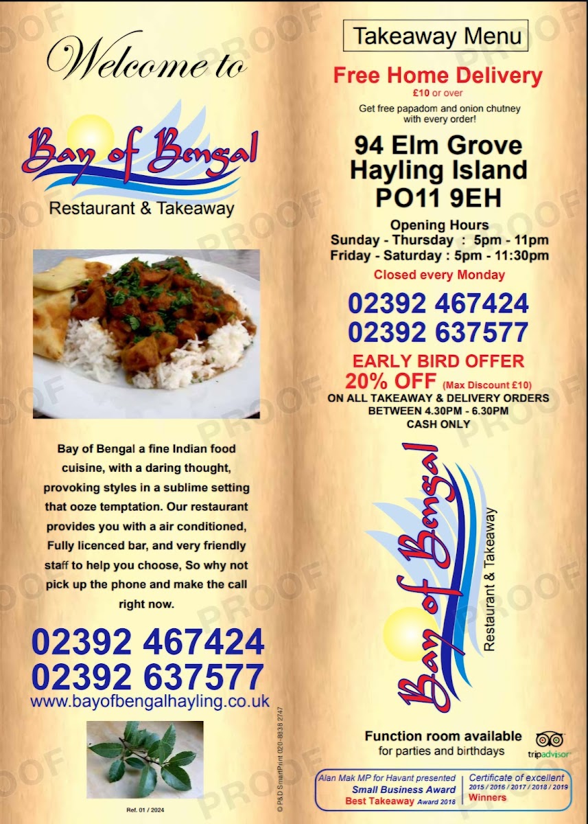 Introducing the menu at Bay of Bengal, a charming curry house located on Hayling Island, promises an exquisite culinary journey. Renowned for its authentic Indian cuisine, this establishment captivates diners with vibrant flavors and stunning presentations. Guests rave about the perfectly crisp onion bhaji and the tender, spice-balanced lamb madras, crafted with care and without excess oil.